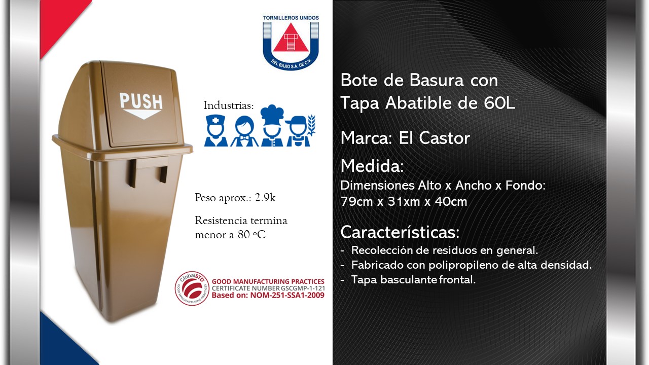 | CASTOR - BOTE DE BASURA 60 LITROS CON TAPA ABATIBLE COLOR CAF | CASTOR – BOTE DE BASURA 60 LITROS CON TAPA ABATIBLE COLOR CAF |
