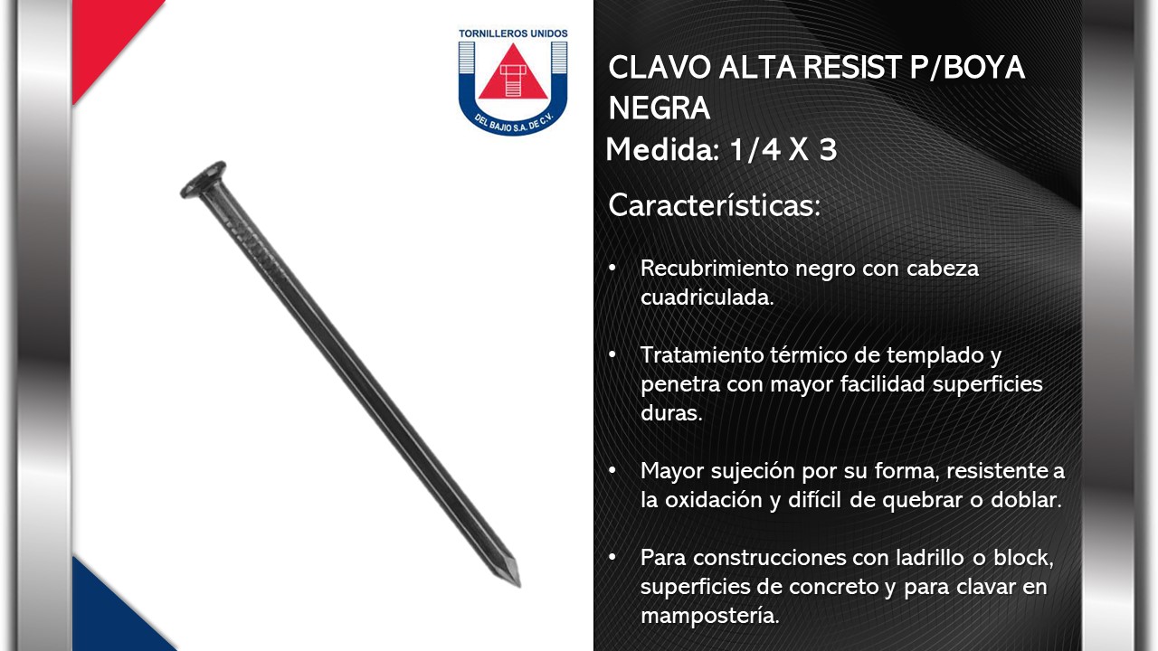 CLAVO ALTA RESIST P/BOYA NEGR 1/4 X 3