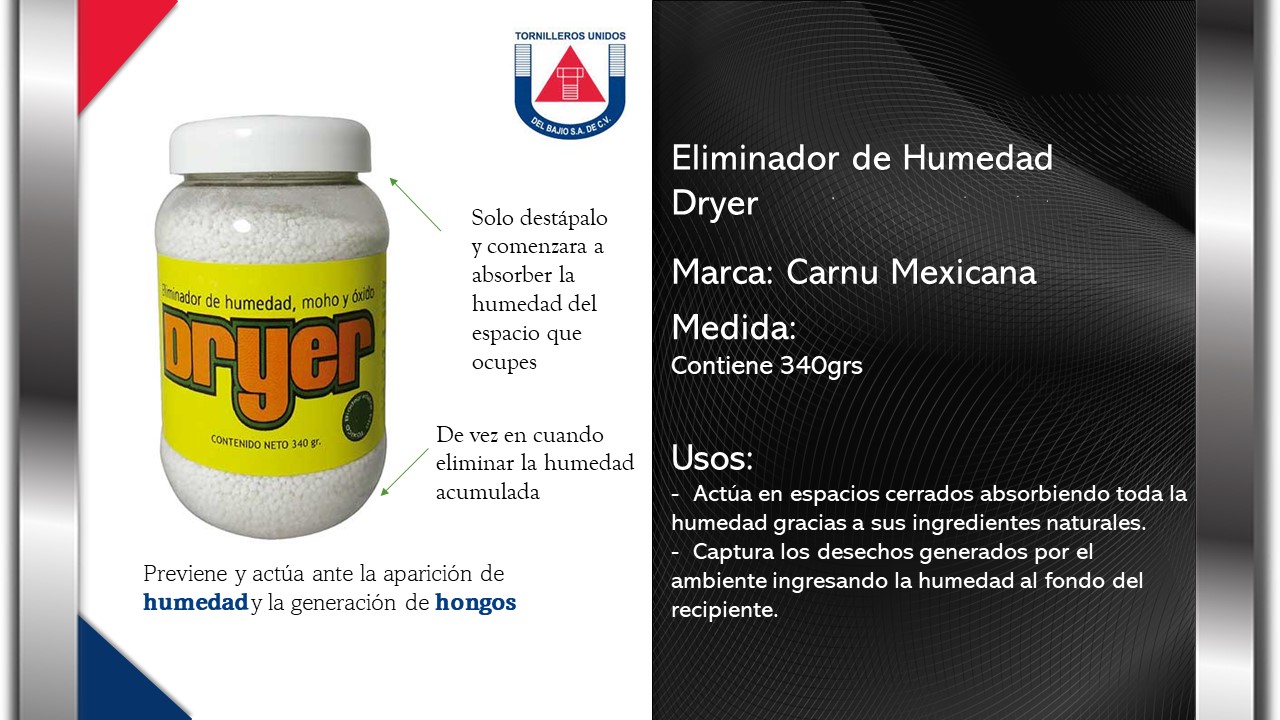 DRYER ELIMINADOR DE HUMEDAD CARNU 340grs cantidad