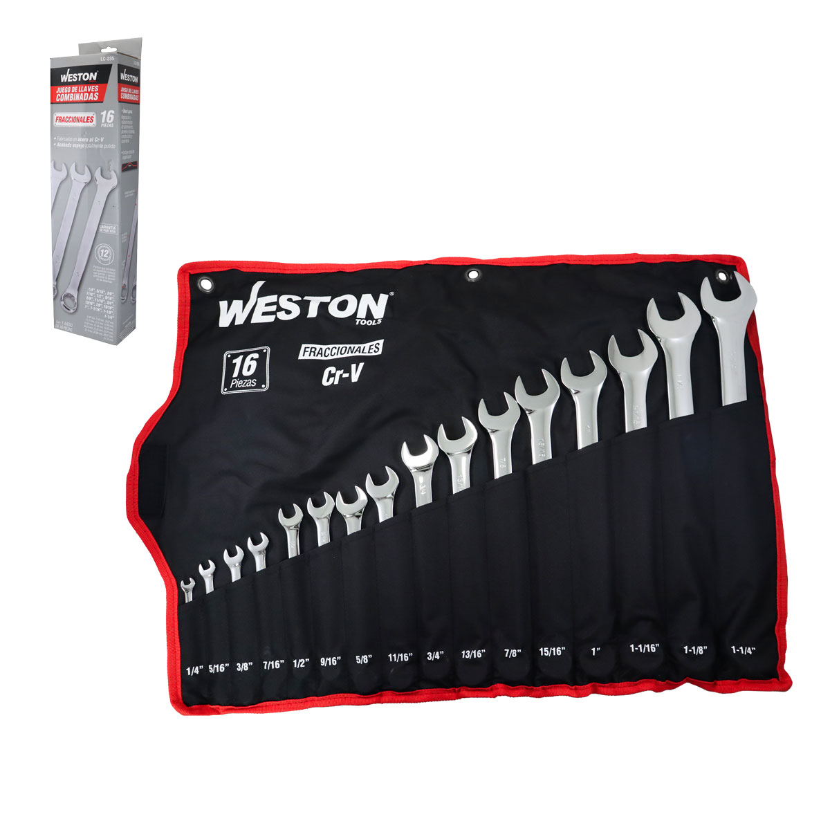 JUEGO DE 16PZS DE LLAVES COMBINADAS ACERO CrV CON PULIDO ESPEJO FRACCIONALES DE 1/4″ – 1_1/4″