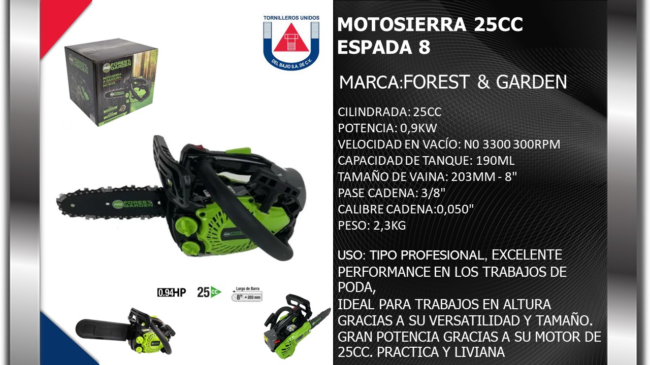 MOTOSIERRA A GASOLINA MANUAL 8" cantidad