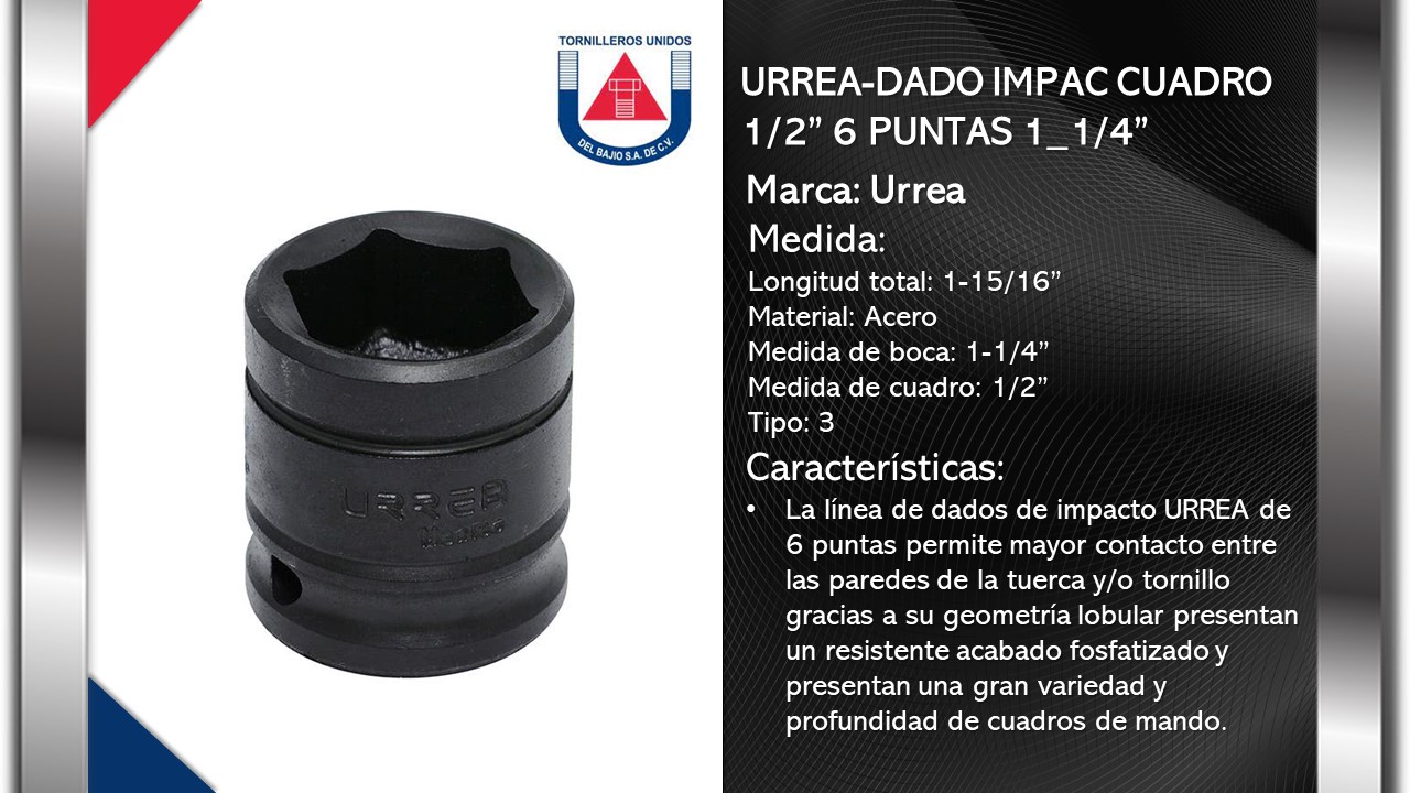 URREA-DADO IMPAC CUADRO 1/2" 6 PUNTAS 1_1/4" cantidad