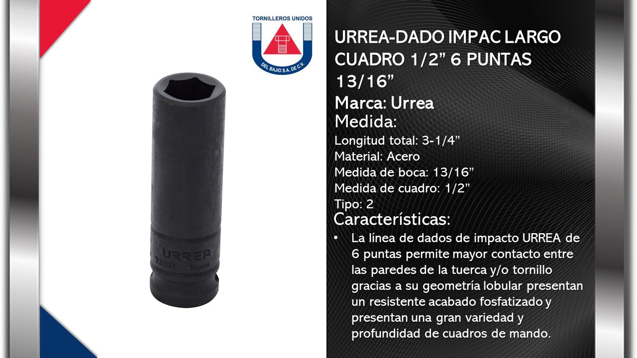 | URREA-DADO IMPAC LARGO CUADRO 1/2" 6 PUNTAS 13/16" | URREA-DADO IMPAC LARGO CUADRO 1/2" 6 PUNTAS 13/16" |