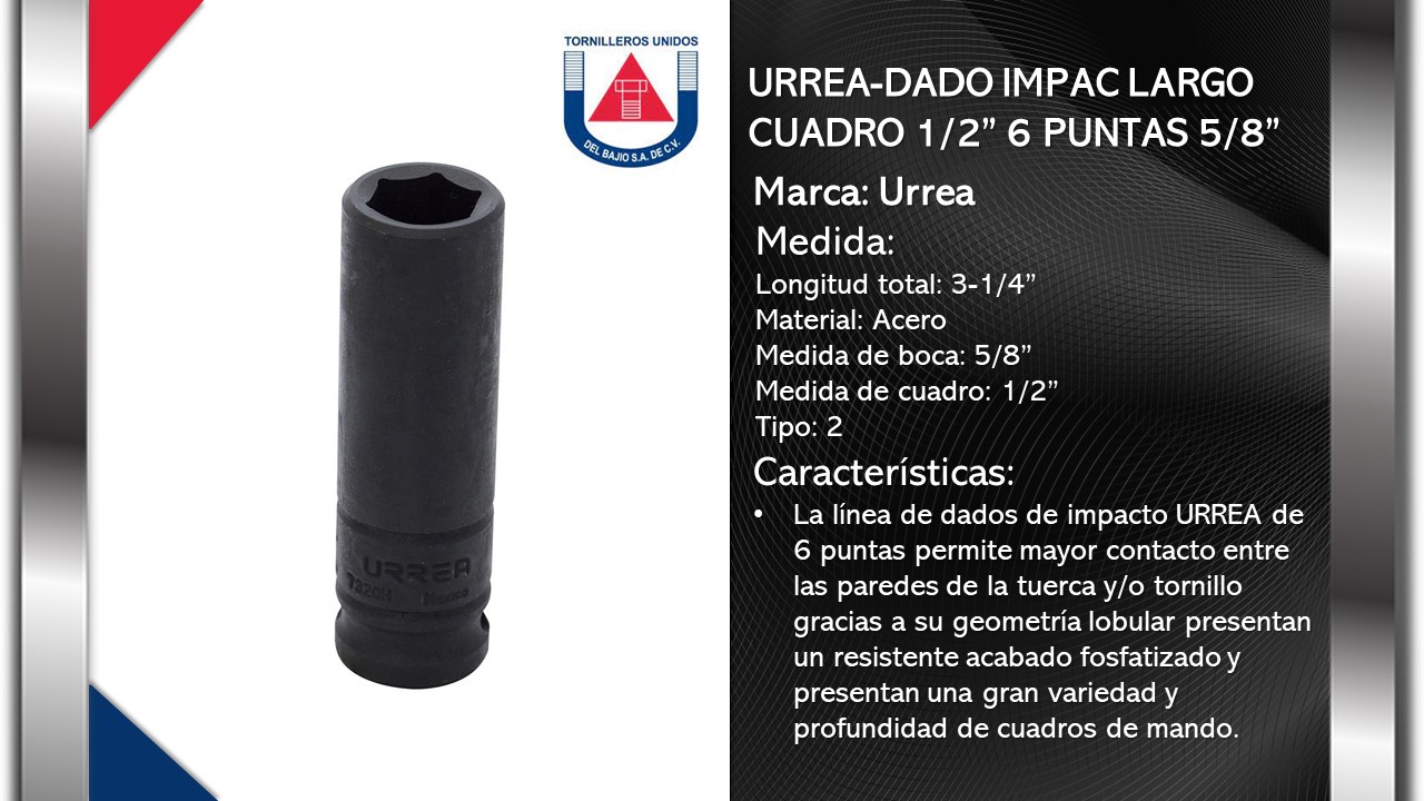 URREA-DADO IMPAC LARGO CUADRO 1/2" 6 PUNTAS 5/8"