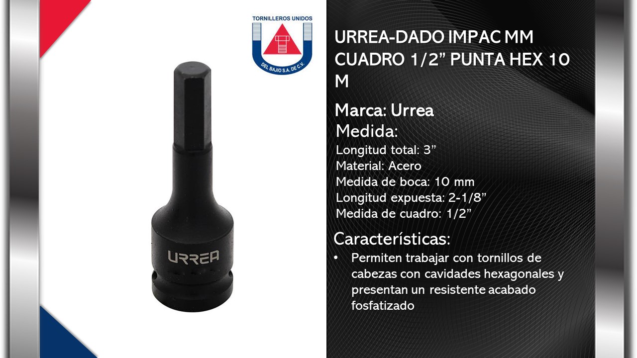 URREA-DADO IMPAC MM CUADRO 1/2" PUNTA HEX 10 M